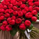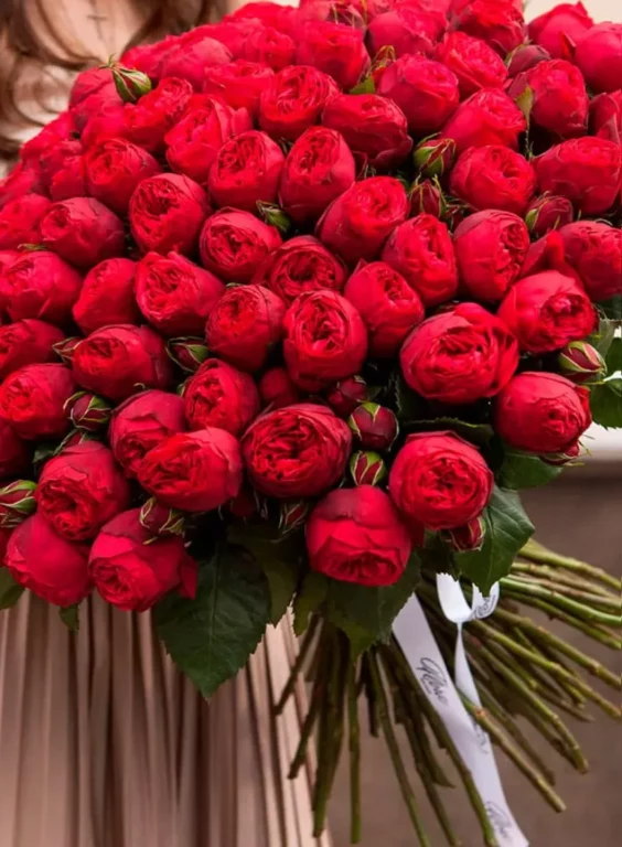 101 пионовидная роза – потрясающий подарок, который запомнится получателю на долгое время. Огромная охапка пышных бутонов с пленительным ароматом никого не оставит равнодушным. Подобный жест лучше слов рассказывает о том, насколько человек вам важен. Удивительные растения долго сохраняют свежесть, будут служить напоминанием о невероятном сюрпризе.