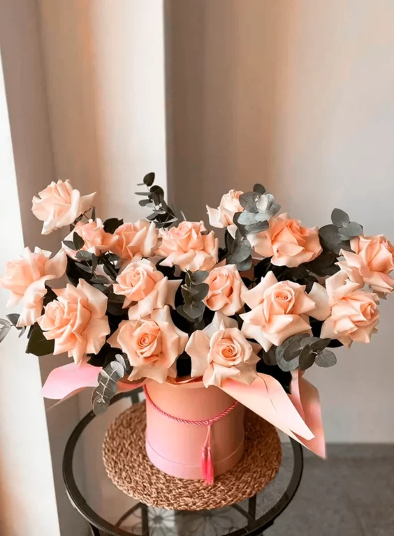 Доставка цветов / Розы / 15 прекрасных розовых роз в коробке