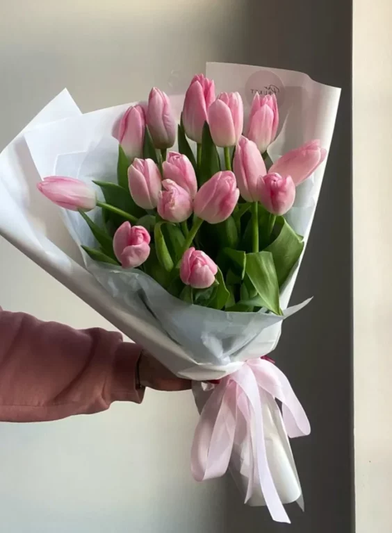 Доставка цветов / Каталог 8 Марта, Тюльпаны / 15 розовых тюльпанов