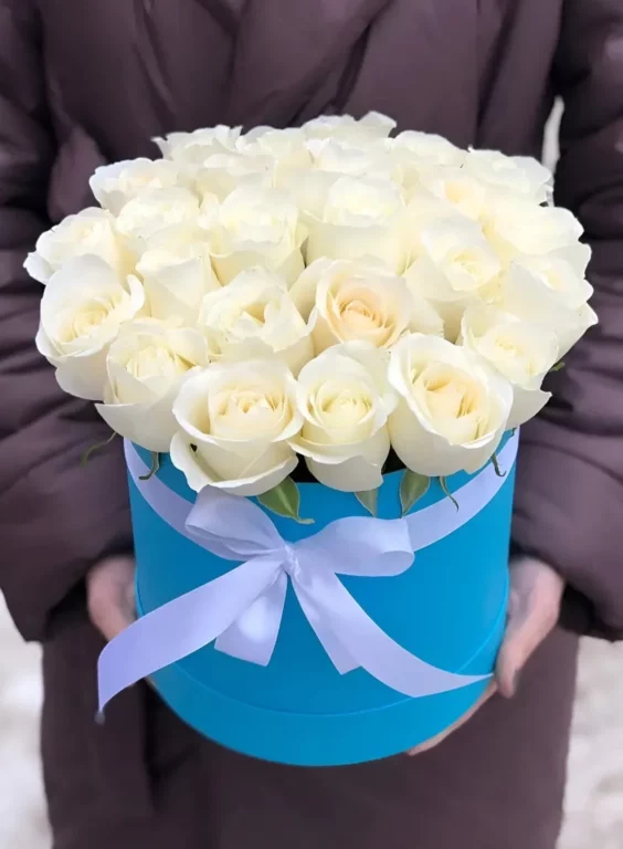 Доставка цветов / Розы / 31 белая роза в коробке