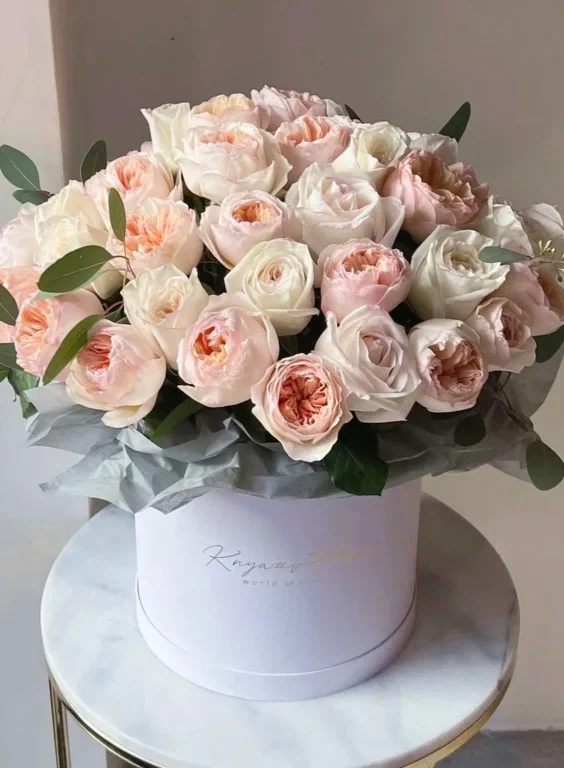 Доставка цветов / Розы / 31 кремовая роза в коробке