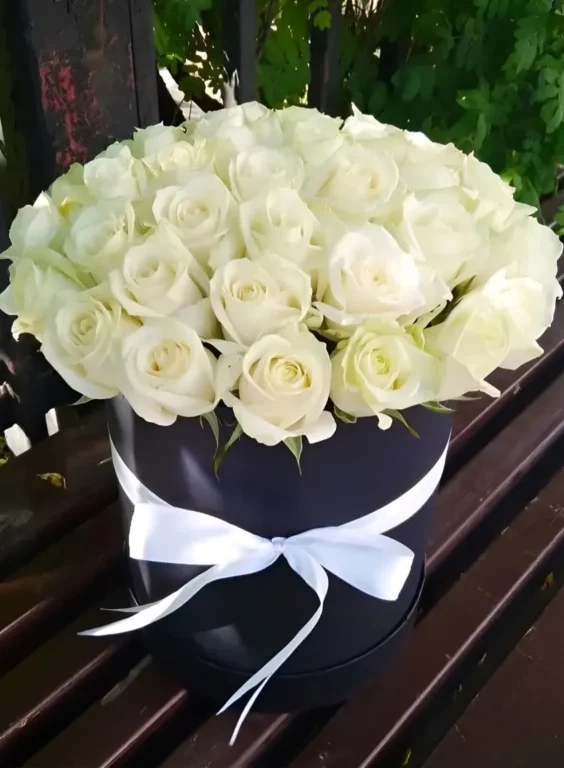 Доставка цветов / Розы / 35 белых роз в черной коробке