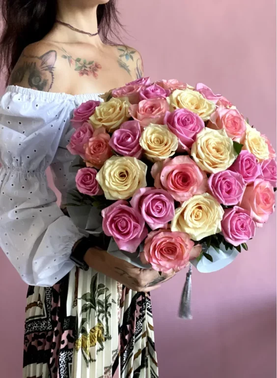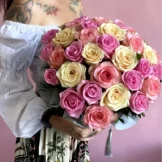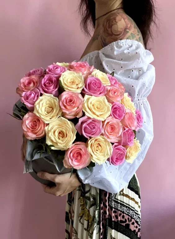 Доставка цветов / Розы / 35 разноцветных роз в коробке