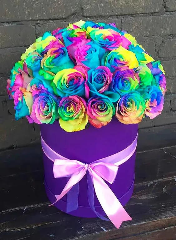 Доставка цветов / Розы / 51 радужная роза в коробке