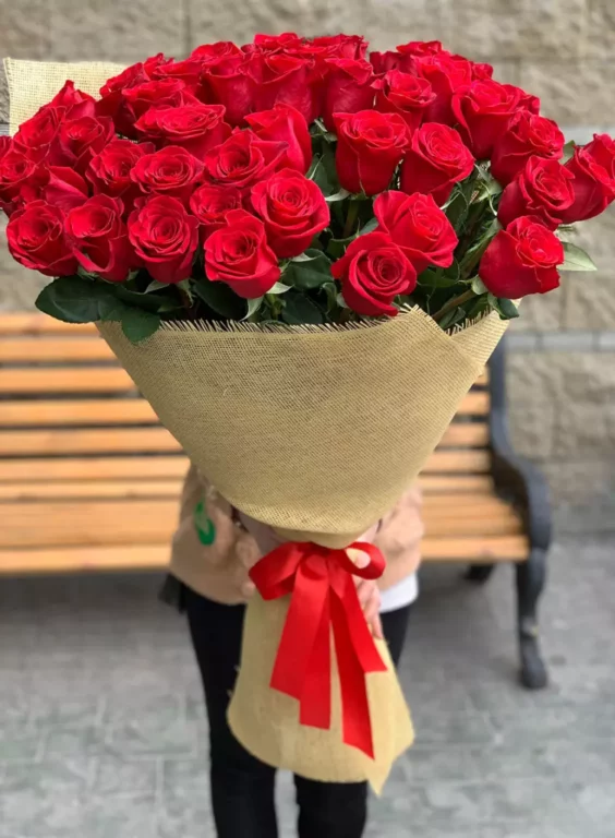 51 роза 100 см – отличный подарок любимой или друзьям, родственникам на свадьбу. Вы будете отлично выглядеть с объемным букетом метровых роз на торжественной церемонии. Невероятная цветочная композиция собрана из высококачественных бутонов, которые способны продолжительное время сохранять свежесть и наполнять помещение непревзойденным ароматом.