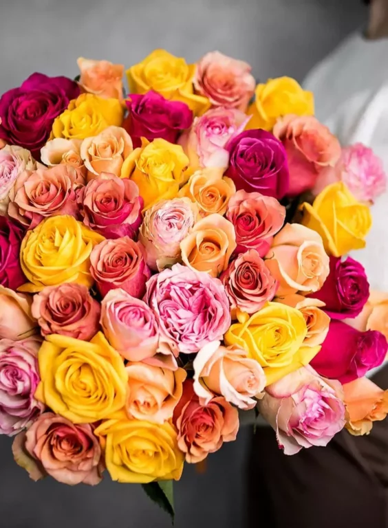 51 роза микс – это воплощение яркости, жизнерадостности и позитива. Оригинальная цветочная композиция способна удивить самого серьезного человека. С помощью букета можно мгновенно улучшить настроение в пасмурный день или необычно поздравить с личными праздниками. Необычные бутоны способны продолжительное время сохранять свежесть и аромат, напоминая о вашем внимании.