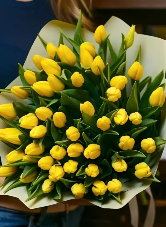 Доставка цветов / Каталог 8 Марта, Тюльпаны / Желтые тюльпаны Алматы / 51 желтый тюльпан
