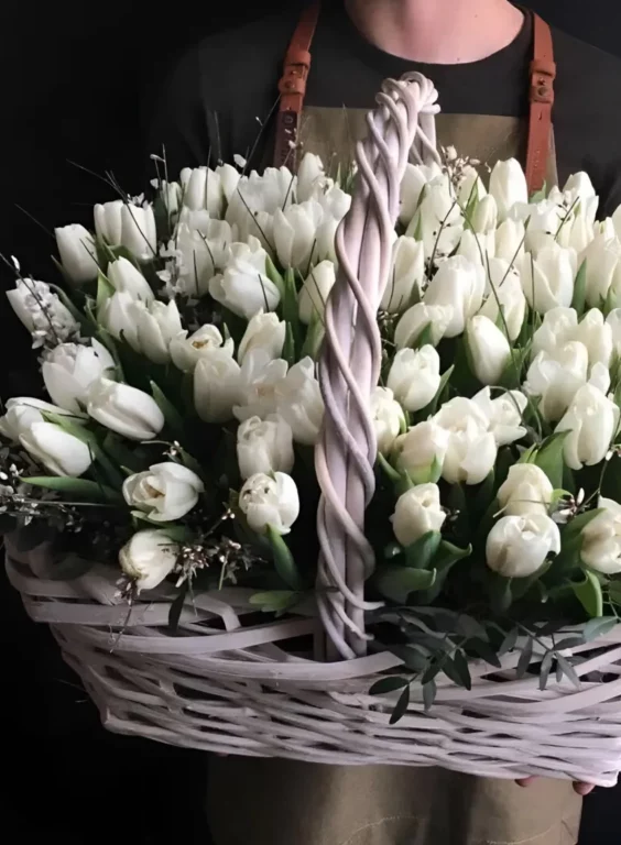 Доставка цветов / Тюльпаны / Белые тюльпаны в корзине