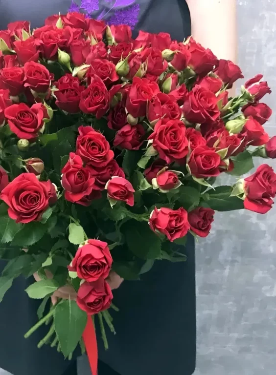 Бордовые кустовые розы станут идеальным дополнением торжественного мероприятия.