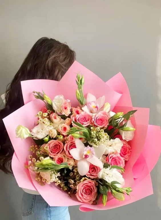 Доставка цветов / Лизиантусы, Орхидеи, Розы / Букет «Ameli»