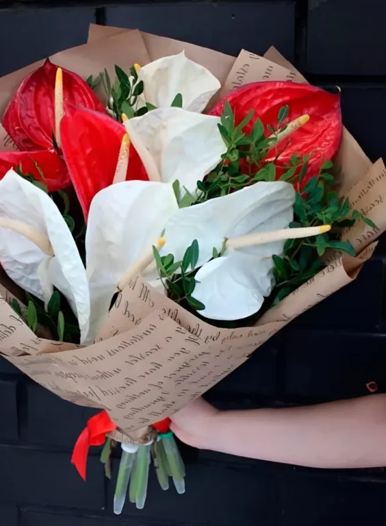 Доставка цветов / Антуриумы / Букет антуриумов в крафтовой бумаге