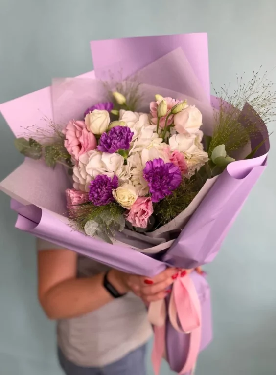 Доставка цветов / Гвоздики, Гортензии, Лизиантусы / Букет «Иззаро»