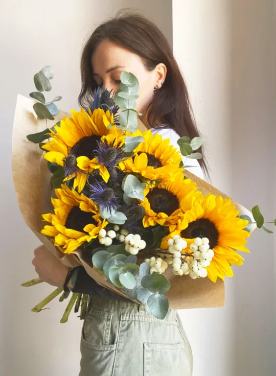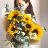 Доставка цветов / Акции, Подсолнухи, Эвкалипт, Эрингиумы / Букет «Barhatnaya osen»