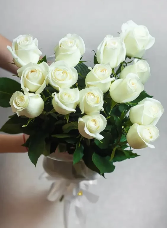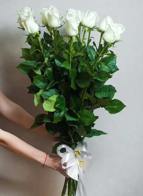 Букет белых роз 100 см символизирует не только невинность, красоту невесты, но и восторг перед