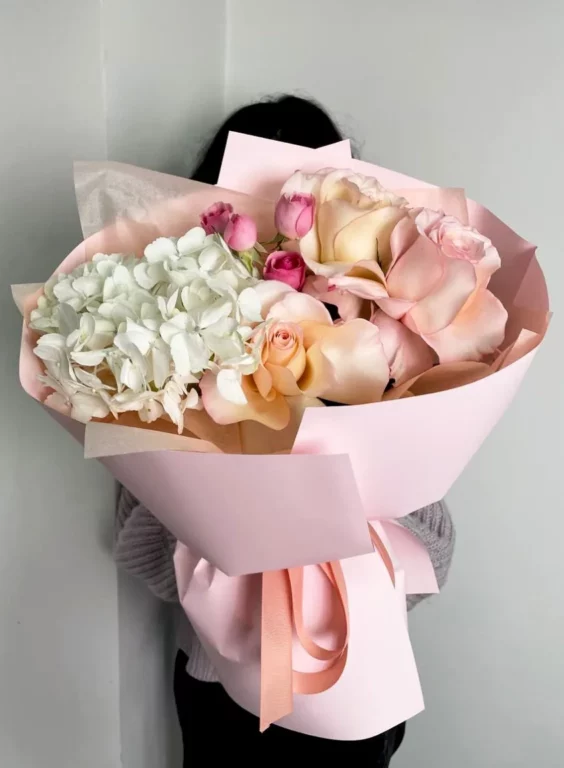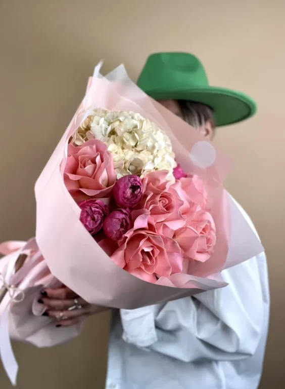 Доставка цветов / Гортензии, Розы / Букет «Бенефит»