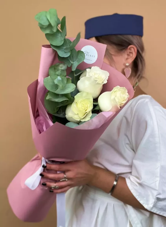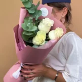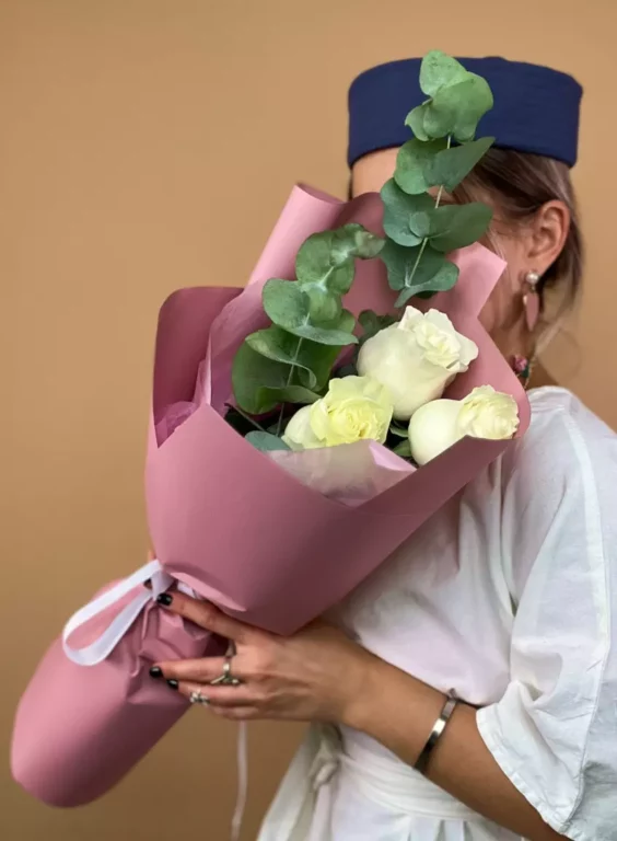 Доставка цветов / Розы, Эвкалипт / Букет «Bezmyatezhnost»