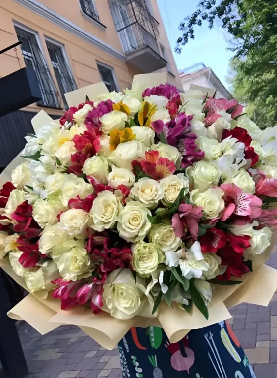 Доставка цветов / Альстромерии, Розы / Букет «Bolshe, chem lyubov»
