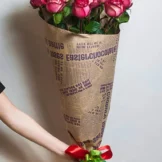 Доставка цветов / Розы / Букет бордовых метровых роз в крафте
