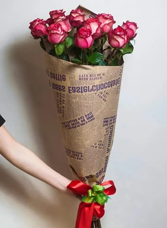 Букет бордовых метровых роз в крафте станет прекрасным способом выразить свои чувства на