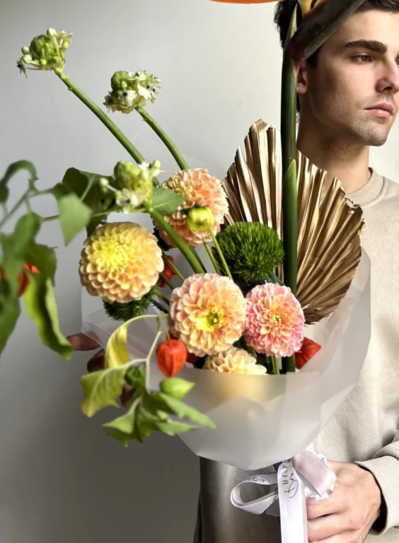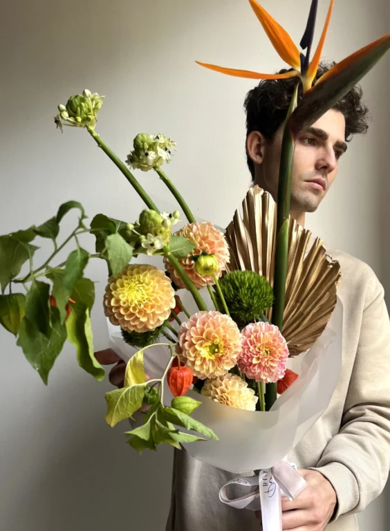Доставка цветов / Гвоздики, Георгины, Стрелиции / Букет «Cvetochnyj shtorm»