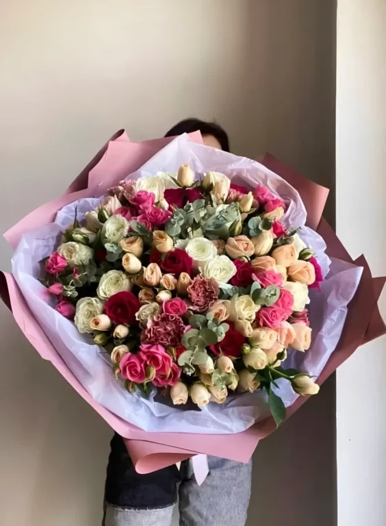 Доставка цветов / Гвоздики, Розы, Эвкалипт / Букет «Dan vysokim chuvstvam»