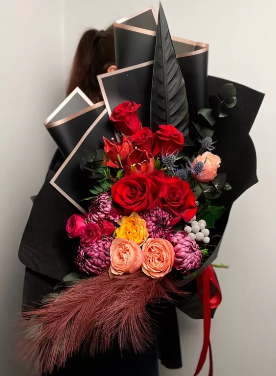 Доставка цветов / Амариллисы, Брунии, Розы, Хризантемы, Эрингиумы / Букет «Диабло»