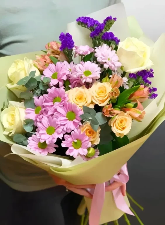 Доставка цветов / Альстромерии, Розы, Хризантемы / Букет «Dzhejn i edvard»