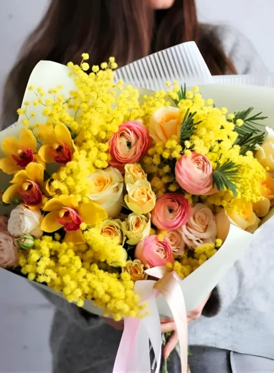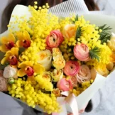 Доставка цветов / Мимозы, Орхидеи, Ранункулюсы, Розы / Букет «Ee glaza»