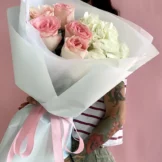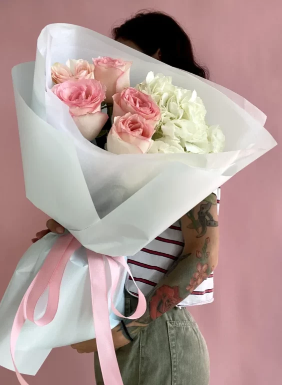 Доставка цветов / Гортензии, Розы / Букет «Флай»