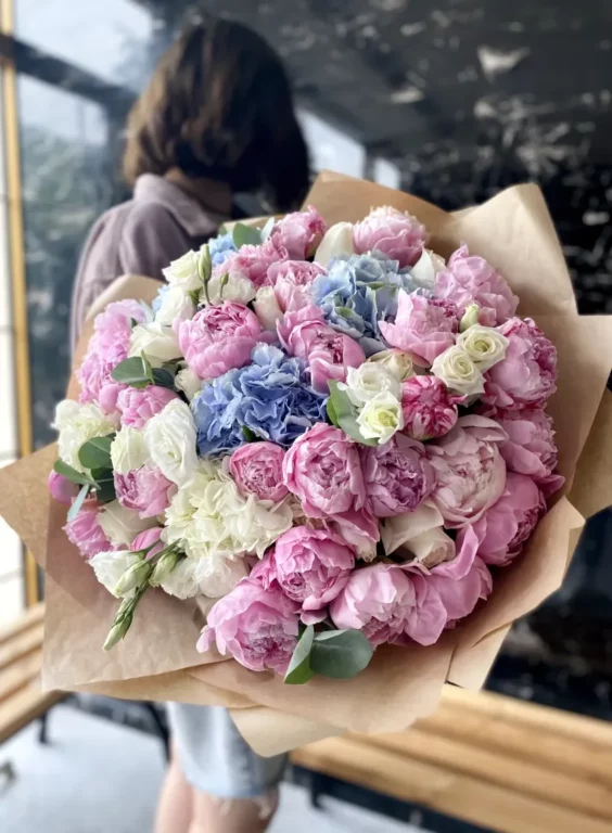 Доставка цветов / Гортензии, Лизиантусы, Пионы, Розы / Букет «Fontan nezhnosti»