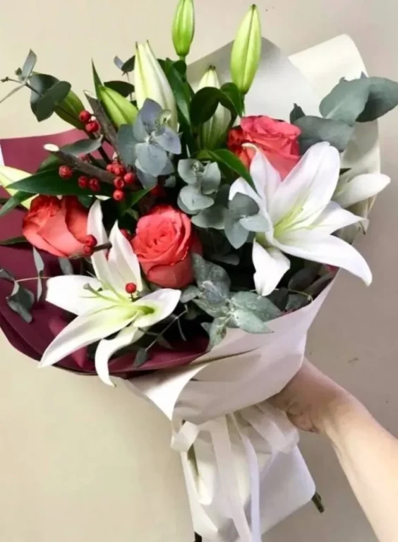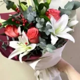Доставка цветов / Лилии, Розы, Эвкалипт / Букет «Garmonichnyj akkord»