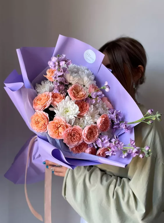 Доставка цветов / Маттиола, Розы, Хризантемы / Букет «Hrustalnyj perezvon»