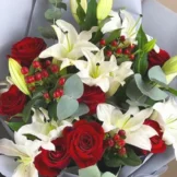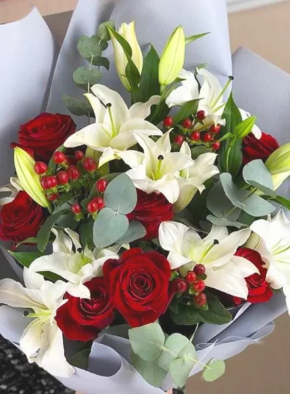 Доставка цветов / Гиперикум, Лилии, Розы, Эвкалипт / Букет «Iskushenie»