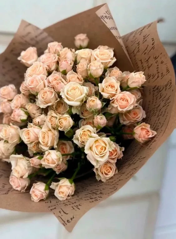 Букет из 10 кустовых роз выглядит как настоящая охапка изысканных бутонов. На одной веточке