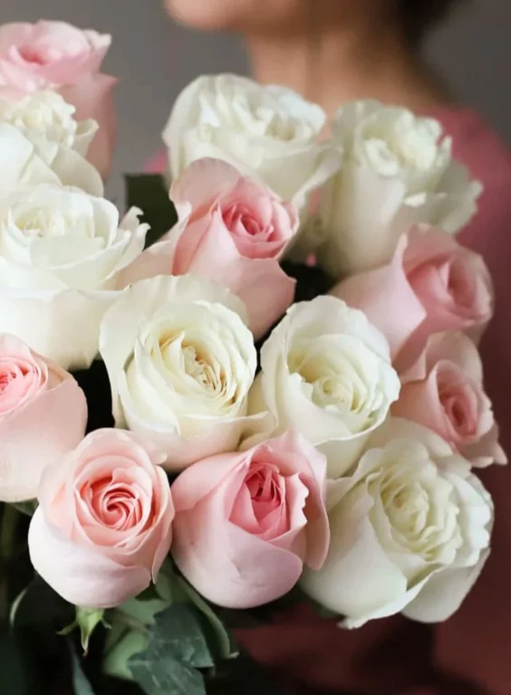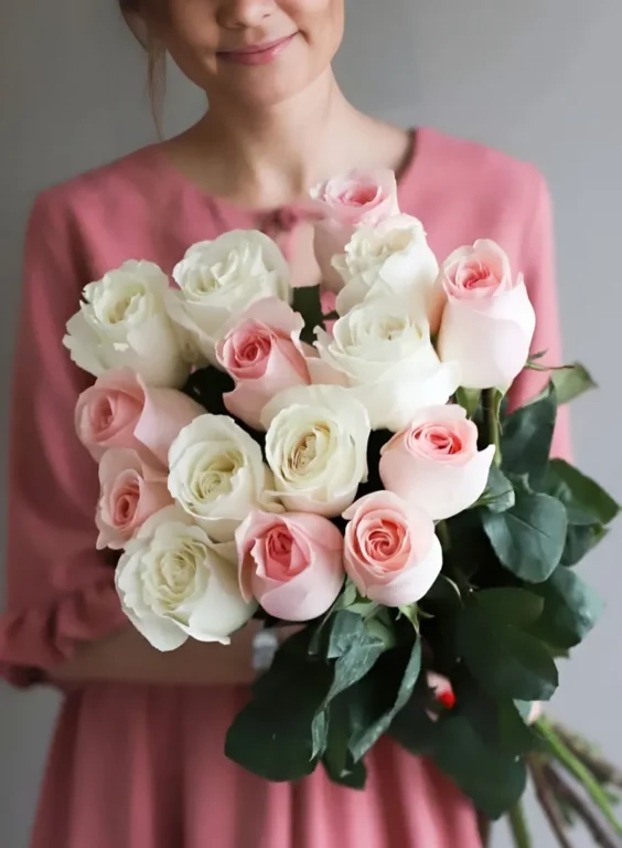Букет из белых и розовых роз – это олицетворение нежности и очарования. Невероятные бутоны