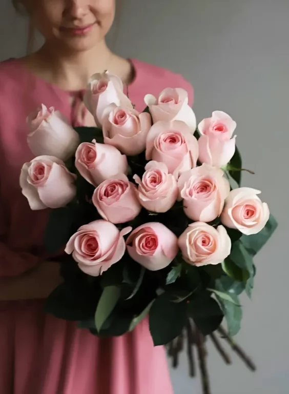 Доставка цветов / Розы / Букет из 15 милых розовых роз