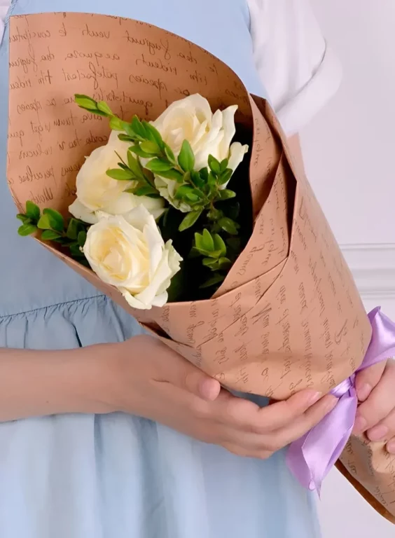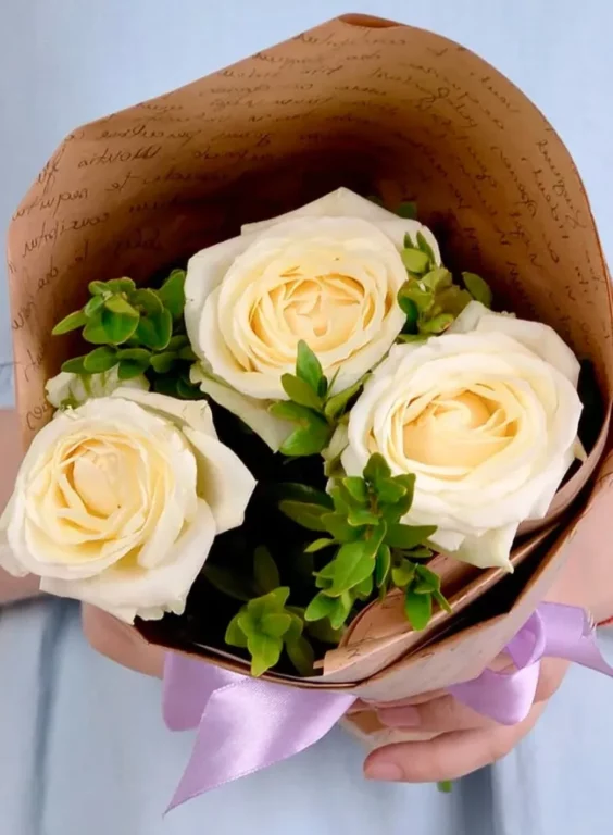 Букет из 3 белых роз символизирует чистоту души и настоящую преданную любовь, глубокое