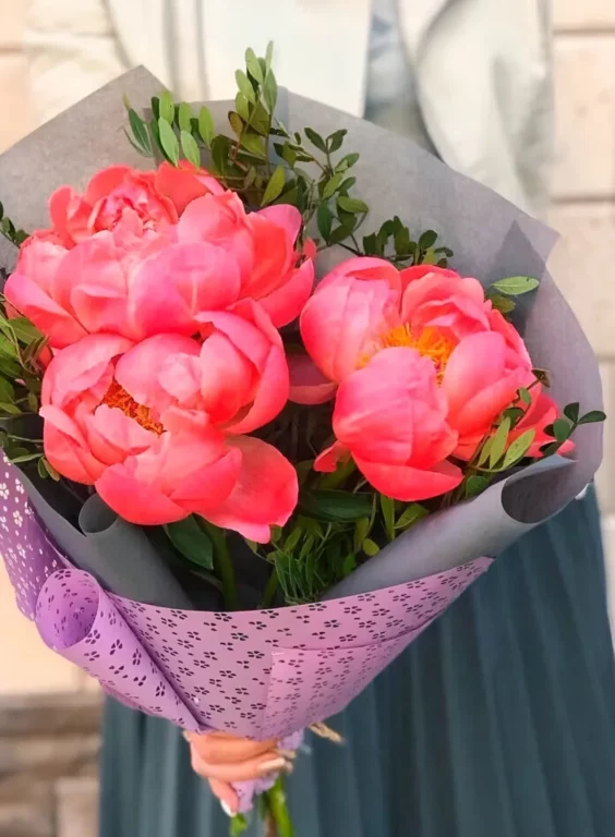 Доставка цветов / Пионы / Букет из 3 красных пионов