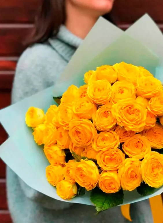 Доставка цветов / Розы / 35 желтых пионовидных роз