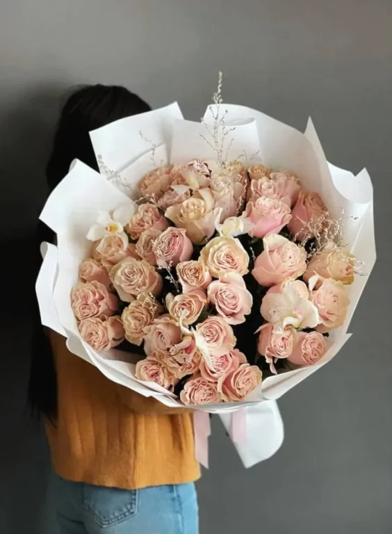 Букет из 41 роз – это признак истинной любви. Шикарно подобранные бутоны отлично сочетаются
