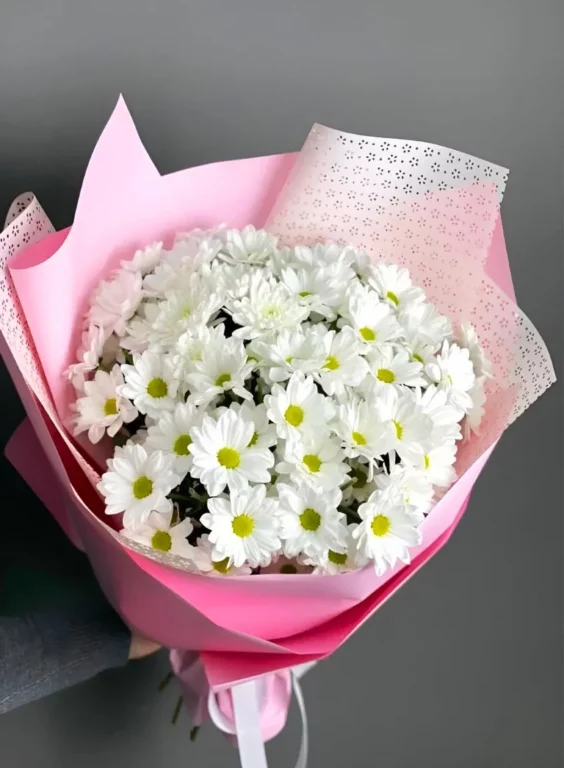 Букет из 5 хризантем – шикарный подарок к любому празднику. Такую композицию можно подарить жене или любимой женщине на важную личную дату или организовать милый, запоминающийся сюрприз без веского повода. Также пышные цветы отлично подходят для поздравления с профессиональными праздниками или выражения признательности, искреннего уважения.