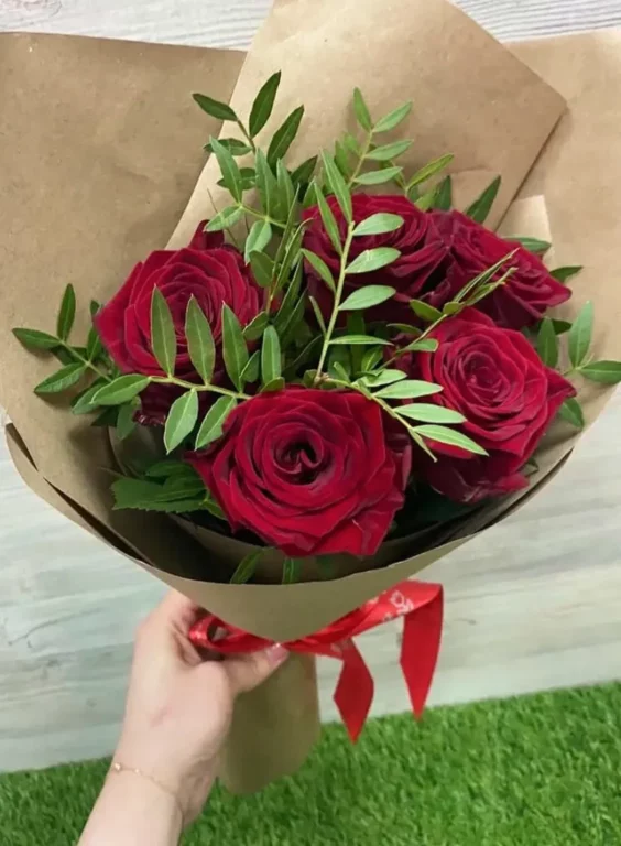 Букет из 5 красных роз – символ настоящей любви, жаркой страсти и искренних чувств. Стильная
