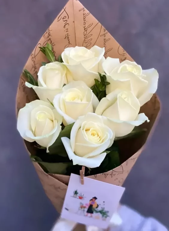 Букет из 7 белых роз поможет выразить любые чувства: рассказать о привязанности, признаться в