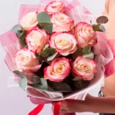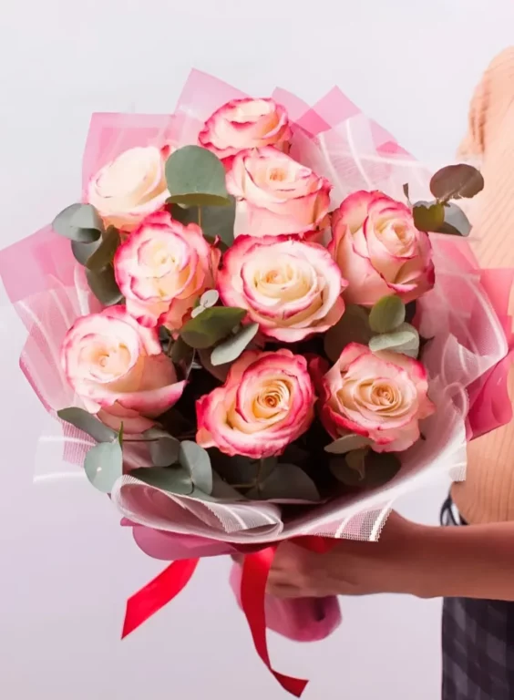 Доставка цветов / Розы / Букет из 9 бело-розовых роз