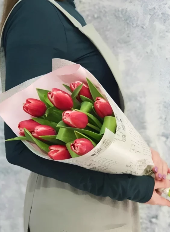 Букет из 9 тюльпанов – хороший подарок для людей, которые что-то значат для дарителя.