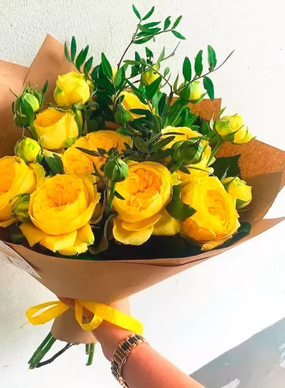 Доставка цветов / Розы / 9 желтых пионовидных роз
