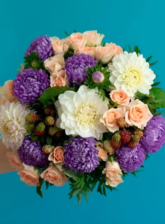 Доставка цветов / Астры, Розы / Букет из астр и георгин