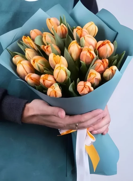 Букет из оранжевых тюльпанов служит пожеланием крепкого здоровья и хорошего настроения. С