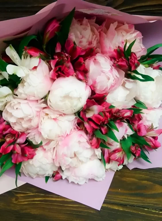 Доставка цветов / Альстромерии, Пионы / Букет из пионов и альстромерии
