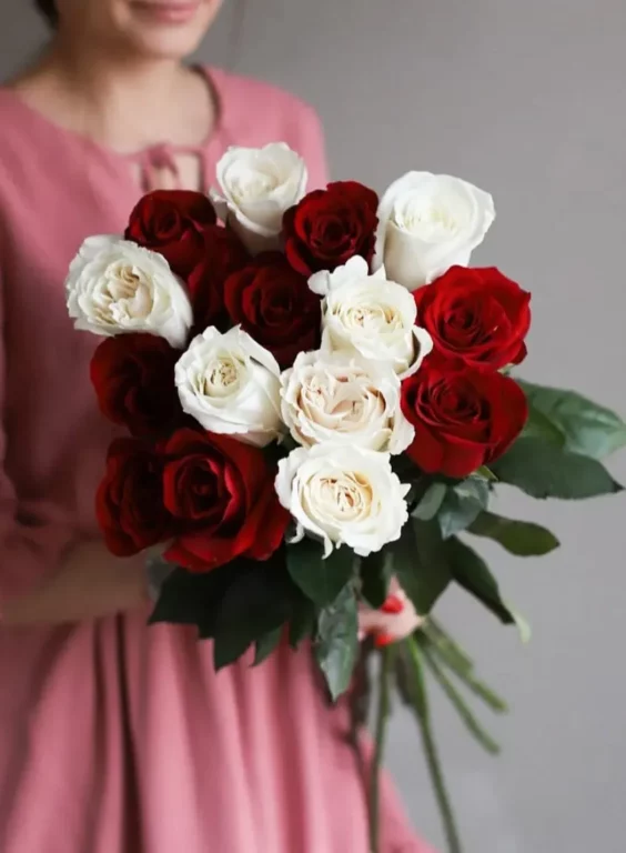 Букет из роз двух цветов подойдет к любому празднику. Цветочный презент станет отличным